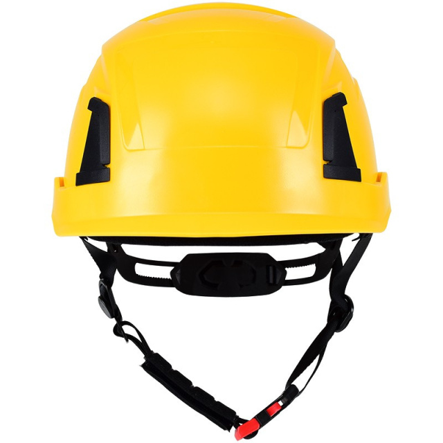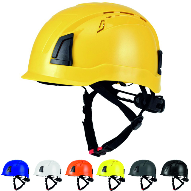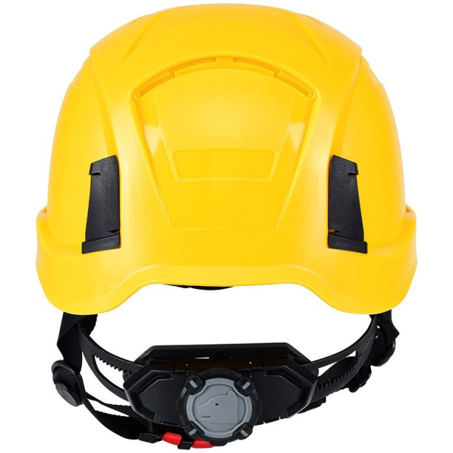 Pro Cap D!-Rock Schutzhelm, moderner, leichter Arbeitsschutzhelm, als Höhenarbeitshelm durch das kurze Dach und der Bergsteigerhelm nachempfundenen Form, bestens geeignet, hoher Tragekomfort mittels 6-Punkt Textil-Bänderung, hoch reißfest, austauschbares Stirnband, einfaches Anpassen des Kopfbandes, durch ein modernes Ratschensystem, perfektes Klima, dank neuartigem Belüftungssystem - obenliegende Ventilationsöffnungen (Kamineffekt), inklusive montiertem Kinnriemen, Nackenschutz, Befestigung einer Stirnlampe möglich, 30 mm Stecktaschen zur Aufnahme aller gängigen Helm-Bügelgehörschützer und Visierhalterungen. In 7 verschiedenen Farben lieferbar (Gelb, Blau, Weiß, Orange, Neongelb, Anthrazit und Schwarz).